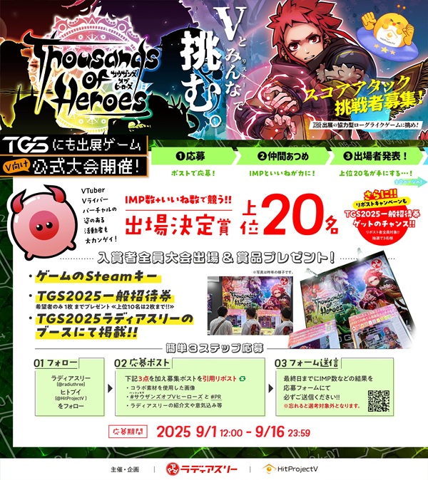 ラディアスリーはローグライク「Thousands of Heroes」のアーリーアクセスの公開日を決定し、VTuber向け関連イベントを開催する。