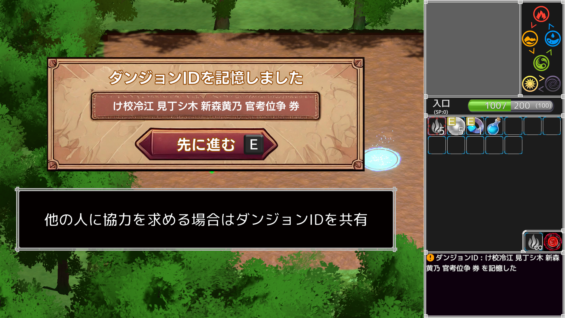 メインプレイヤーがダンジョンID(文字列)をチャットなどで共有すると……