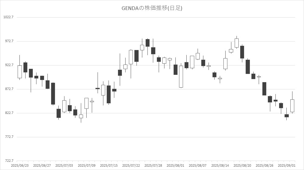 アニメやホビーなどその他コンテンツ関連銘柄は、GENDA<9166>が高い。ここ最近はテクニカル的には820円~970円のレンジ相場が続いていたが、下値抵抗線である820円に到達したことで自律反発狙いの買いが入ったようだ。