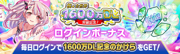 ■1600万DL記念ログインボーナス開催!