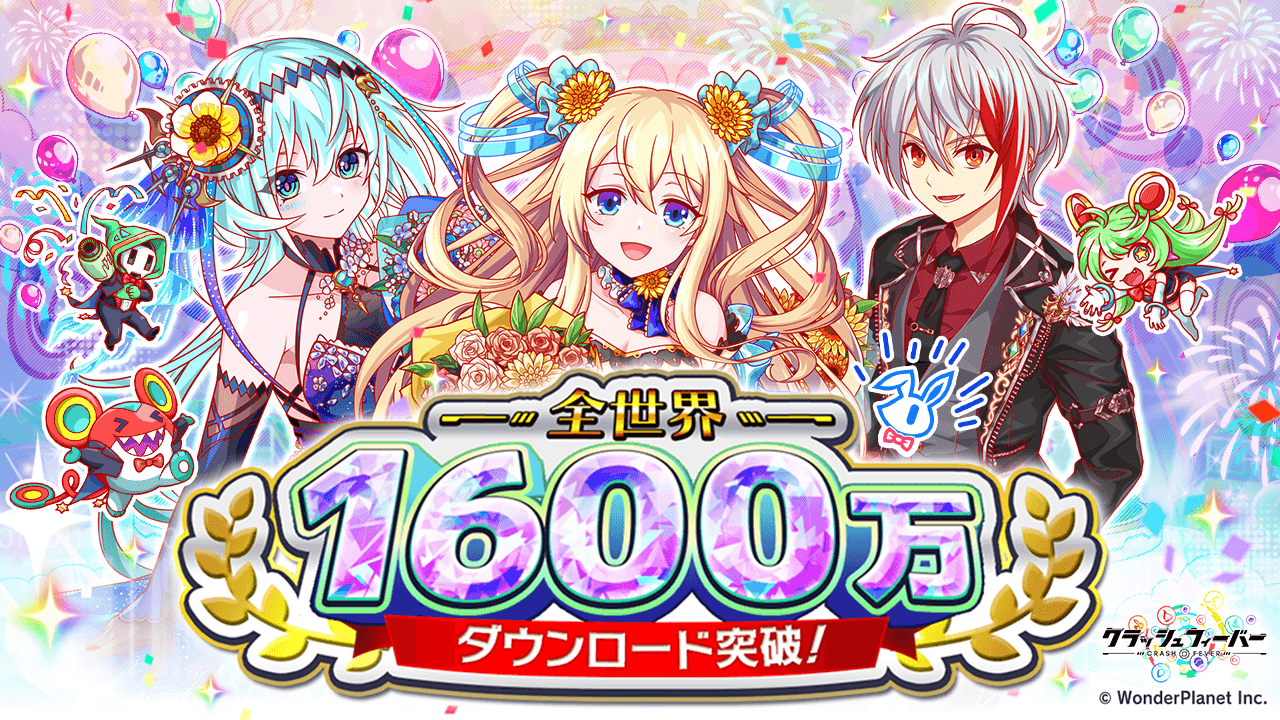 ワンダープラネット<4199>は、iOS/Android端末向けに配信中の『クラッシュフィーバー』において、全世界1600万ダウンロードを突破したことを発表した。