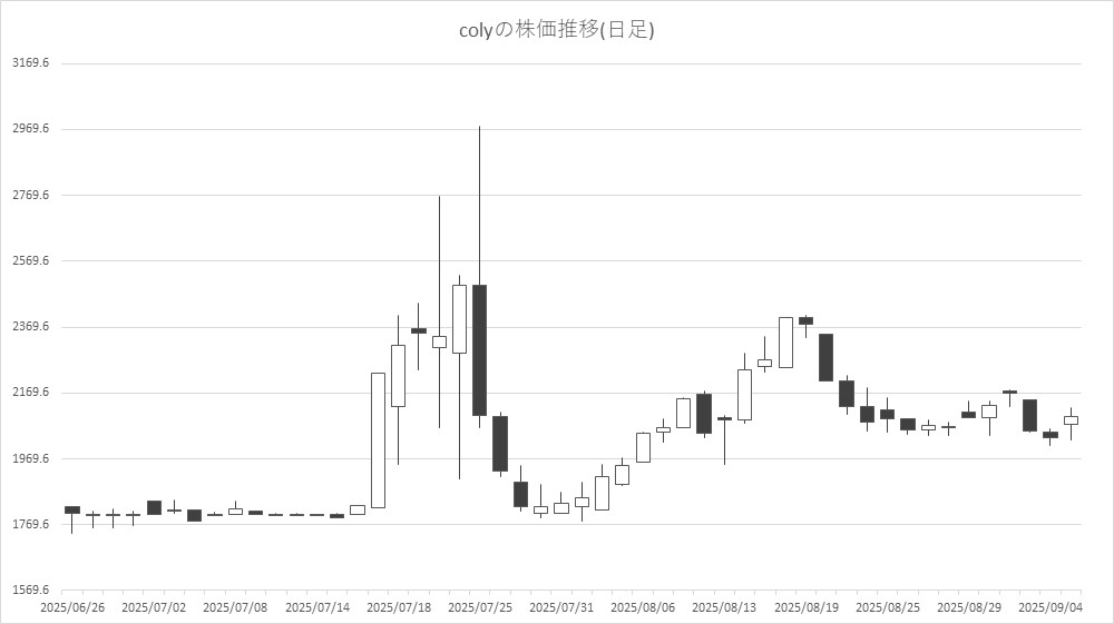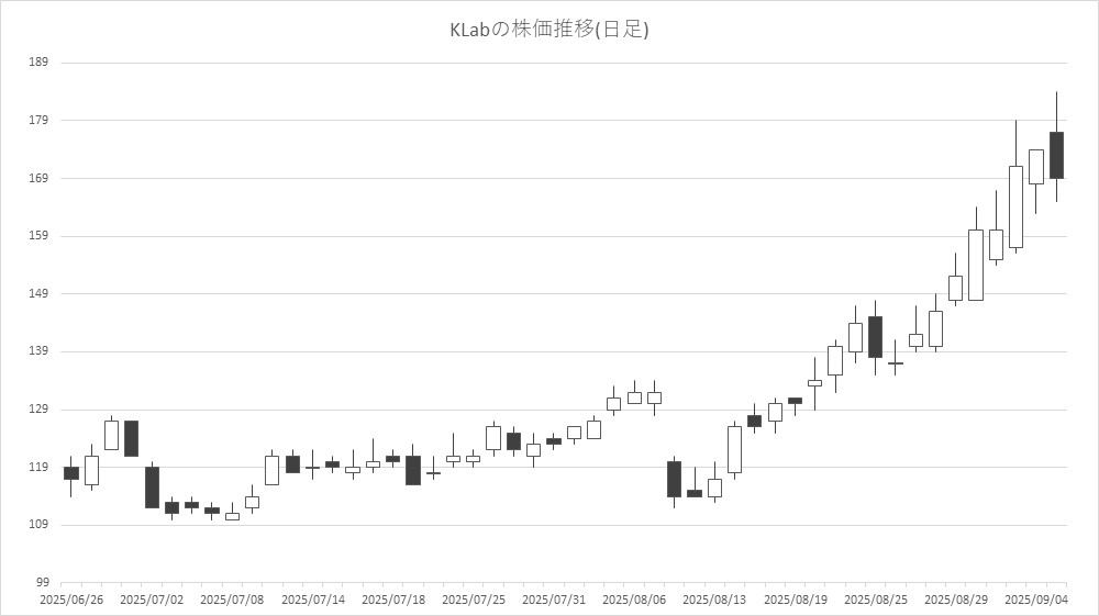 最後に騰落ランキングを見ると、Link-U<4446>やバンク・オブ・イノベーション(BOI)<4393>、coly<4175>、ブシロード<7803>が値上がり率上位となり、イオレ<2334>、オルトプラス<3672>、KLab<3656>、エディア<3935>が値下がり率上位となった。