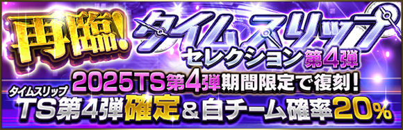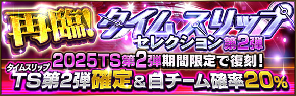 コナミデジタルエンタテインメントのモバイルゲーム『プロ野球スピリッツA』(以下、プロスピA)にて、「2025 タイムスリップ(TS)選手(第1弾~第5弾)」が9月8日(月)14:59までの期間限定で再登場している。