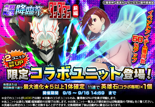 ■超強力ユニット!『モモ』『オカルン』をゲットしよう。『超降臨祭×ダンダダン』前編開催!