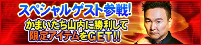 アプリ版『MJ』で開催する、お笑い芸人コンビ「かまいたち」山内さんとのコラボイベント。大会は三人打ちのみの開催となり、スコア合計点を競う。期間中は、山内さん本人がスペシャルゲスト対決に参戦! 山内さんのスコアを上回るとアガリボタンが獲得できる。この他にも大会に参加し様々な条件を満たすことで、山内さんをイメージしたデフォルメ姿の進化型SPキャラ(SSR)や、EX背景、卓背景がもらえる。なお、進化型SPキャラ(SSR)のボイス(スペシャル)とアガリボタンは、山内さんによる新規録りおろし。