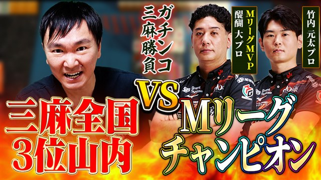 ▼【麻雀プロとガチ対決】“三麻全国3位”かまいたち山内がMリーグ王者に挑む!勝てば“山内杯”開催⁉