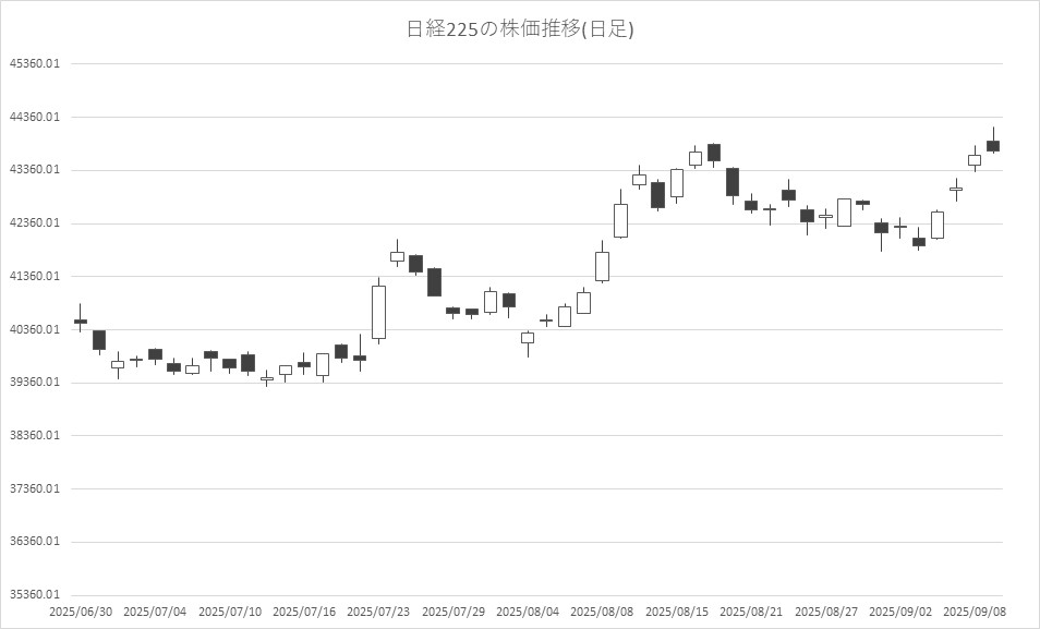 9月9日前場の東京株式市場は4日続伸。日経平均株価は、前営業日比88円99銭高の4万3732円80銭で午前中の取引を終えた。一時541円92銭高の4万4185円73銭まで買われる場面があった。前日のナスダック総合指数が1ヶ月ぶりに史上最高値を更新し、日本株もその流れを引き継いだ。ただ、買い一巡後は短期的な過熱感への警戒感が強く、利益確定の売りに押されたという。