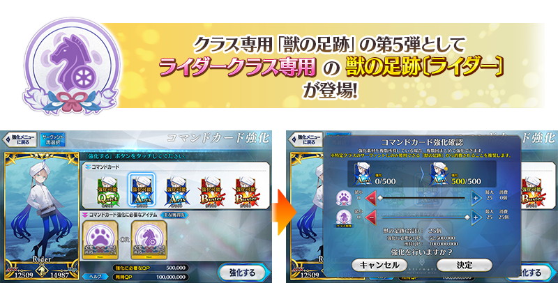 コマンドカードの強化に使用する「獣の足跡」にクラス専用のアイテムを追加する。クラス専用の「獣の足跡」は対応するクラスのサーヴァントにのみ使用でき、通常の「獣の足跡」と同様の効果を得ることができる。