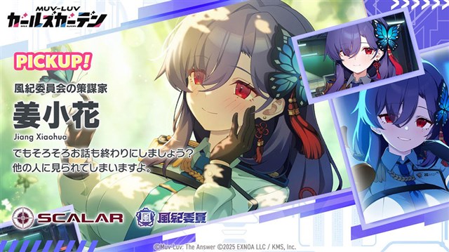 EXNOAとKMSは、『マブラヴ ガールズガーデン』において、9月9日より新SSR「姜小花」【風紀委員会の策謀家】が登場したことを発表した。これに合わせて、「姜小花」Pickupガチャ及び「姜小花」記念ログインボーナスを開催した。