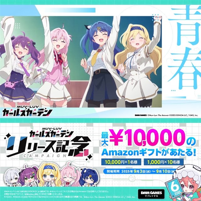 公式X(@Muvluv_GG)では正式リリースを記念して、抽選で最大10,000円分のAmazonギフトカード番号がその場で当たるインスタントウィンキャンペーンを開催中。キャンペーンポストは公式Xより毎日投稿しているので是非公式Xをフォローしてキャンペーンにご参加ください!