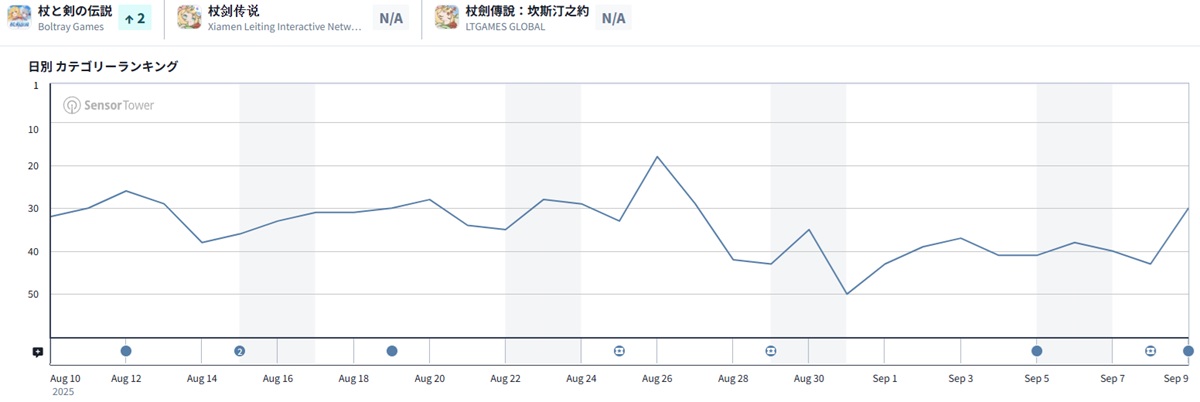 | 30 | 43 | ↑13 | 杖と剣の伝説 | BOLTRAY GAMES |