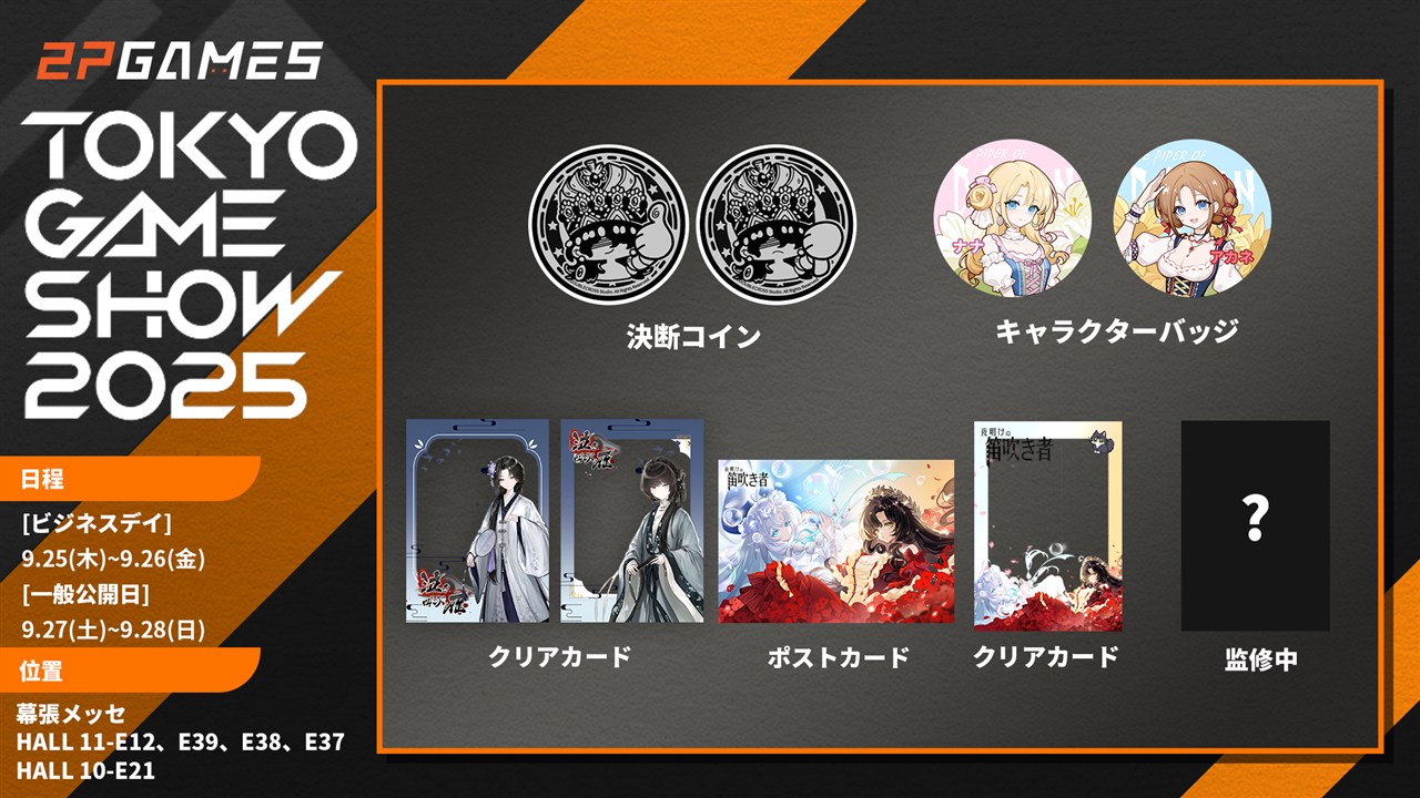 2P Gamesは、9月25日から28日に開催される「TOKYO GAME SHOW 2025」に『スルタンのゲーム』『泣き叫ぶ雁』『夜明けの笛吹き者』『クレイジーハイパーダンジョン』『少女と学園城』と合計5つのゲームを出展することを発表した。