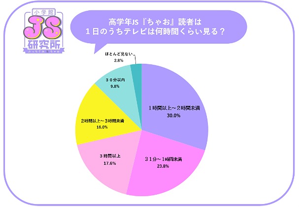 イマドキJSは意外とテレビっ子?63.6%が毎日1時間以上テレビを視聴していることが判明