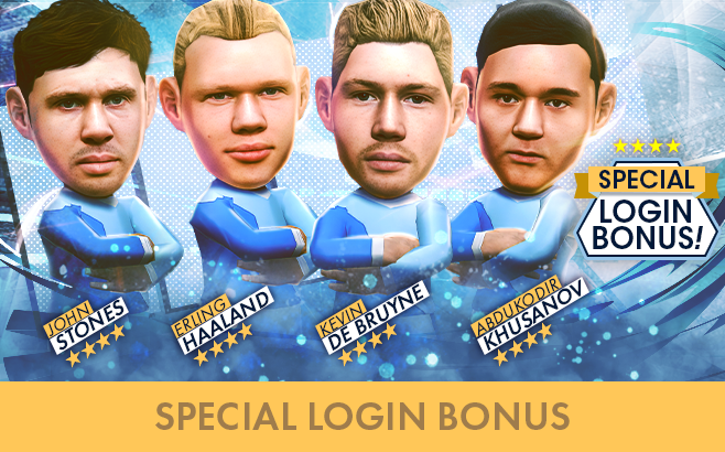 「ケヴィン・デ・ブライネ」「アーリング・ハーランド」「アブドゥコディル・フサノフ」「ジョン・ストーンズ」「マヌエル・アカンジ」といった選手が、得意戦術ポゼッションの新★5選手として登場する“FEVER STAR FES”を開催! あわせて★4バージョンの選手たちがもらえる“スペシャルログインボーナス”も実施する。