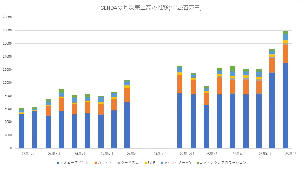 GENDA<9166>は、この日(9月12日)、2025年8月度の月次売上高は前年同月比72.0%増の178億8600万円、2026年1月期累計では前年同期比53.2%増の918億5900万円だったと発表した。
