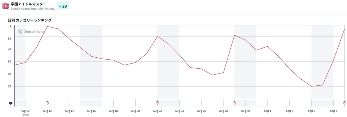 | 29 | 50 | ↑21 | 学園アイドルマスター | バンダイナムコエンターテインメント |