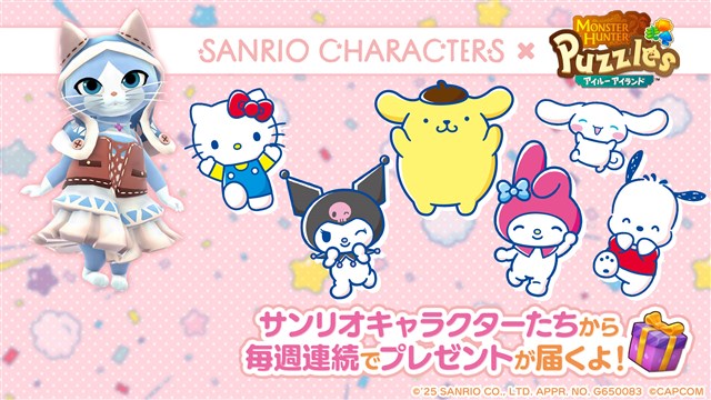 カプコン<9697>は、iOS/Android『モンスターハンターパズル アイルーアイランド』において、本日(9月16日)より、『サンリオキャラクターズ』から毎週プレゼントがもらえるコラボイベントを開催する。