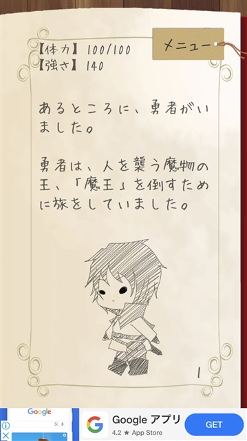 自分の選択が、魔王を倒すため旅をする勇者を様々な結末へと導く。操作は簡単で、選択肢をタップし物語を進めて行くだけというもの。選択肢によってエンディングが変わるマルチエンディング仕様となっている。勇者と一緒に旅をはじめよう。