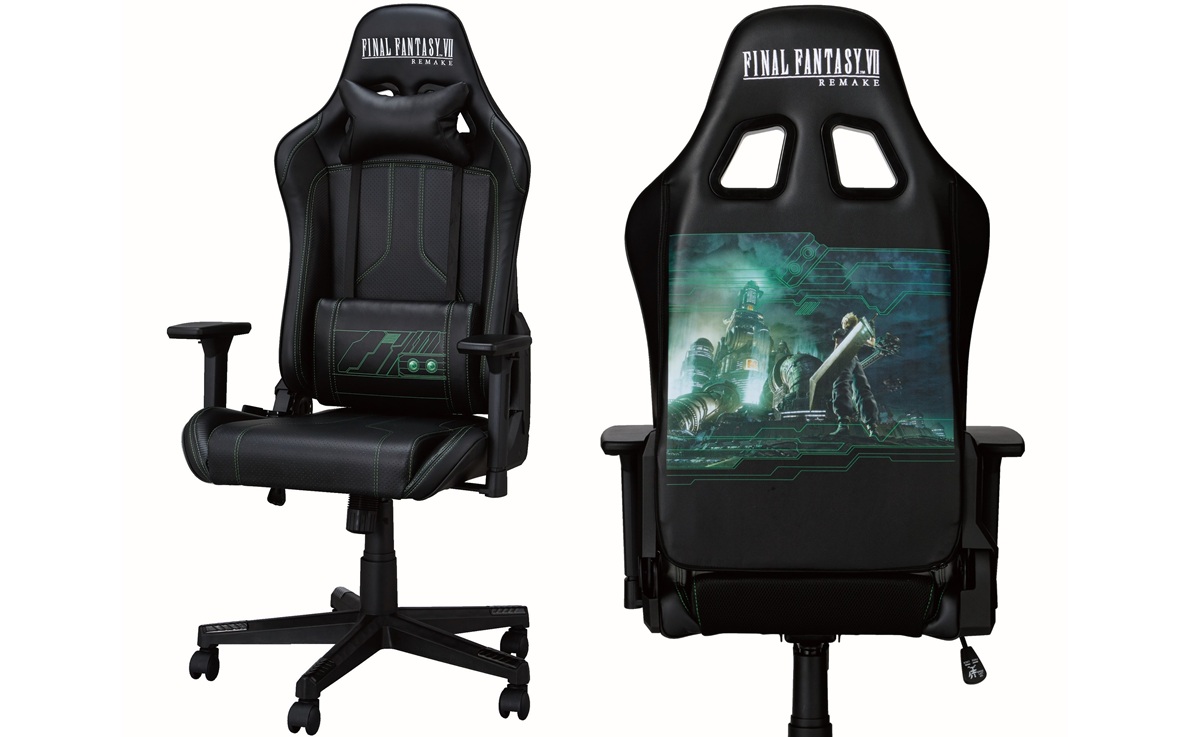 クラウドとセフィロスをデザインしたゲーミングチェアと、バスターソードをイメージしたコーナーデスク。