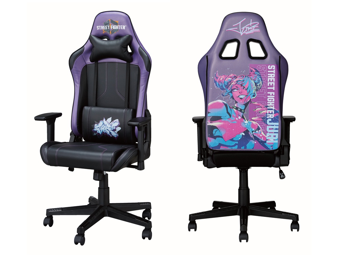 「ジュリ」のクールなアートを背面に大きく取り入れ、またヘッドの裏面には「ジュリ」のシグネチャー風アートの他、ランバーサポートには「ジュリ」の名前のグラフィティアートを採用したゲーミングチェア。