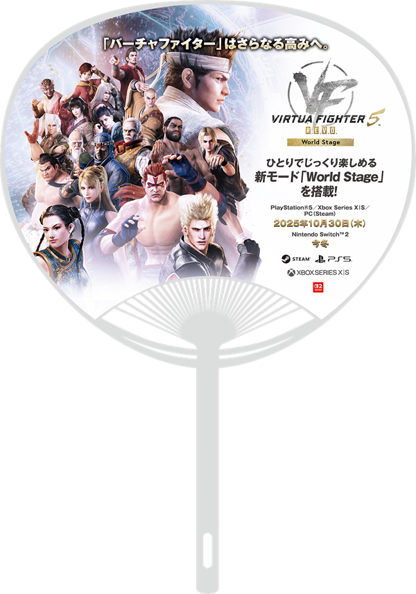 体験した人には、記念品として「「バーチャファイター」シリーズロゴステッカー(黒、白)」をプレゼント。さらに、ブース周辺では「Virtua Fighter 5 R.E.V.O. World Stageうちわ」を配布する。
