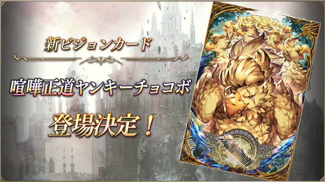 9月24日より、新ビジョンカード「喧嘩正道 ヤンキーチョコボ」の登場が決定した。新ビジョンカードの登場確率がUPする、ピックアップ召喚も同日より開催予定。