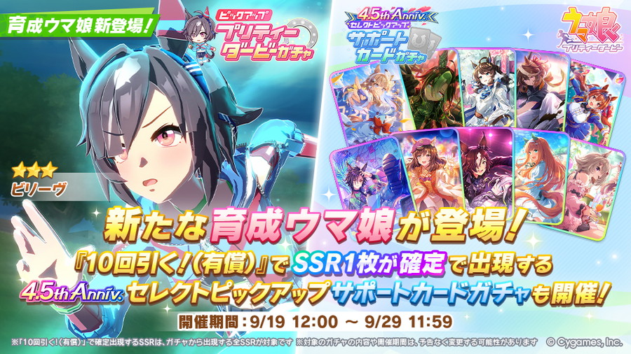 ・Cygames、『ウマ娘』に新育成ウマ娘「★3[精粋]ビリーヴ」が登場! 「4.5th Anniv.セレクトピックアップ サポートカードガチャ」を9月19日より開催!