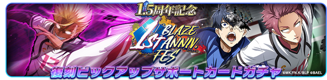 「復刻1周年フェス選手ガチャ」にて、【★3[日本中が待ち望んだ天才]糸師 冴】と【★3[覚醒した悪魔]士道 龍聖】が期間限定でピックアップされる。ピックアップ期間中は、対象選手の提供割合がアップする。