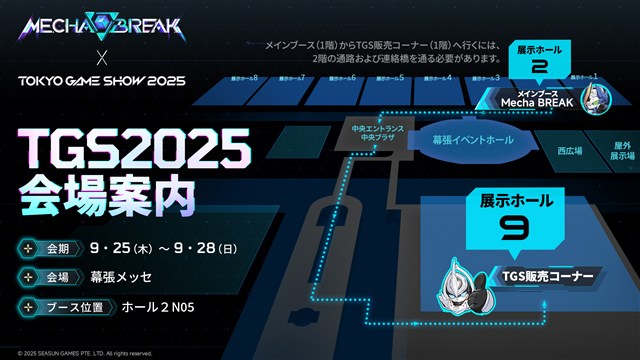Amazing Seasun Gamesは、9月25日~28日に千葉県の幕張メッセで開催されるアジア最大級のゲーム展示会「東京ゲームショウ 2025」にて、『Mecha BREAK シーズン 1:蒼碧たる弧光(Pulse of the Indigo Stone)』のブースを出展する。Mecha BREAKブースではシーズン1のコンテンツが楽しめるだけでなく、来場者限定のコンテンツを用意しているので、ぜひブースにお越しください!