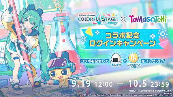 「たまごっち」とのコラボを記念して、「[プロセカ×たまごっち]コラボ記念ログインキャンペーン」を開催中。キャンペーン期間中にログインした方には、「おにぎり」と「ごっちピース×30」をプレゼントする。