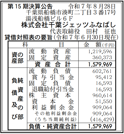 千葉ジェッツふなばしの2025年6月期(第15期)の決算は、最終利益が前の期比66.1%増の4億1600万円と大幅増益を達成した。過去最高益となったようだ。前の期(2024年6月期)の実績は、最終利益2億5000万円だった。9月22日付の『官報』に掲載された「決算公告」で判明した。