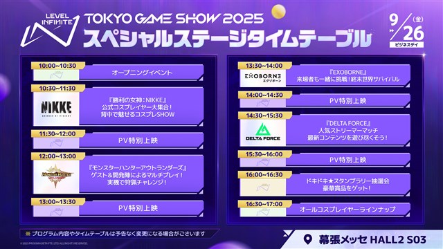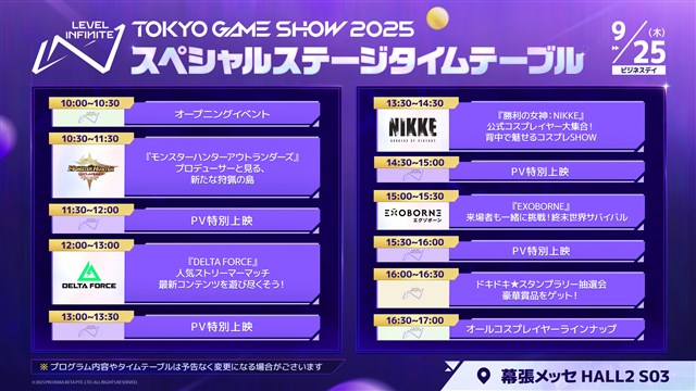 Level Infiniteは、日本最大級のゲームの祭典「東京ゲームショウ2025」での出展内容を発表した。本年の「東京ゲームショウ2025」は、「遊びきれない、無限の遊び場」というテーマのもと、9月25日~28日の会期中、幕張メッセにて開催される。
