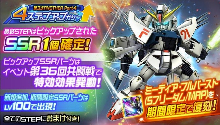 第3次スーパーロボット大戦ANOTHER「Part4」の追加にあわせて、新規SSRユニットパーツが封入された「4ステップアップガシャ」を開催中!