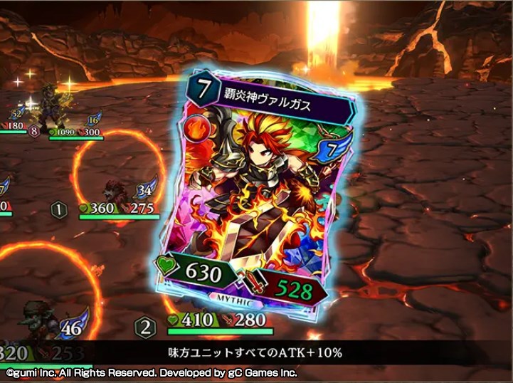 バトルの流れを大きく左右する本タイトル独自のシステム。中盤(3ターン目)と終盤(5ターン目)に、ステータスとスキルが大幅に強化された「降臨ユニット」が自動でドローされる。派手な登場演出とともに、一気に戦局を有利に進めることが可能だ!