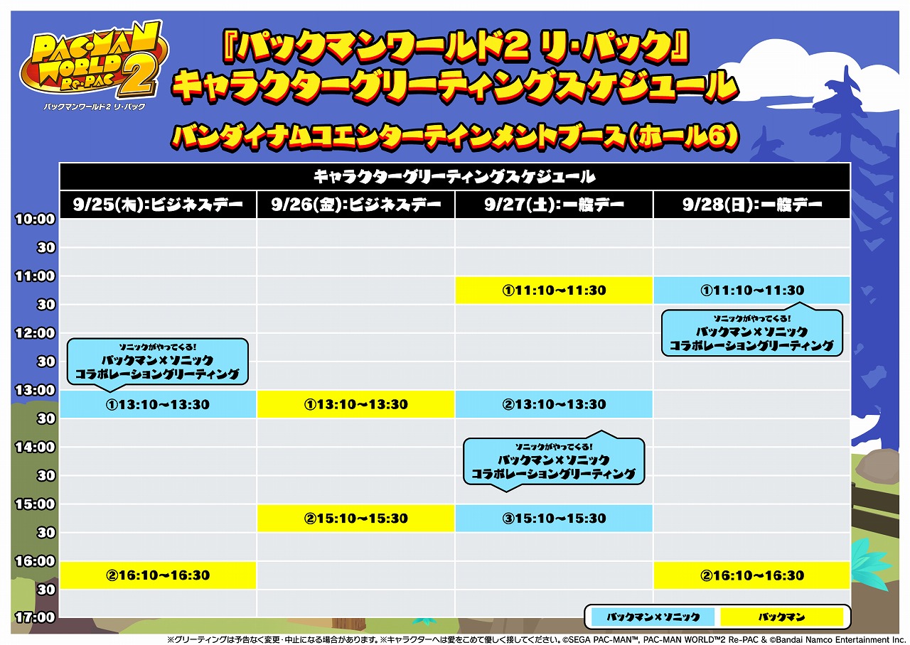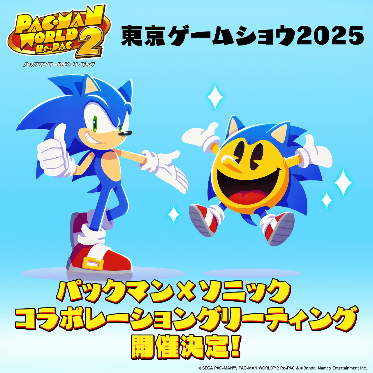「東京ゲームショウ2025」会期中の9/28までバンダイナムコエンターテインメントブースに出演するほか、パックマンとソニックによる「パックマン×ソニック コラボレーショングリーティング」も開催している。また、9/28にはパックマンがセガのブースにも出演を予定している。