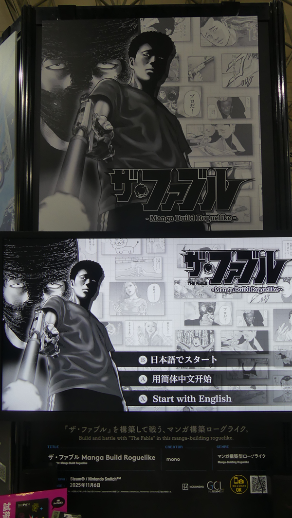 本稿では、TGS2025に出展している企業の中から、講談社ゲームラボのブース(インディーゲームエリア 10-E12)に展示されている『ザ・ファブル Manga Build Roguelike』のプレイレポートをお届けする。