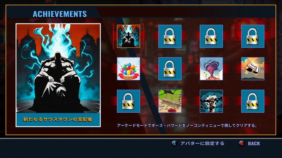 往年の餓狼ファン必見!本作のキーアートやキャラクターイラストなど、全59枚が閲覧できるギャラリーモードを新搭載した。さらに、チャレンジをクリアしてアバターイラストを獲得できるAchievementなど、ゲームの世界観をより深く楽しむための新要素が満載。