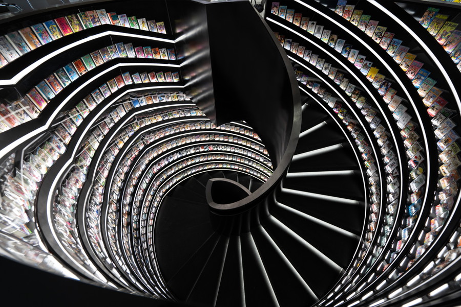 ただそこからが本当に大変で。こんな大きな規模でのパタパタをつくって、しかもそれを全体で自動で制御するシステムをつくる、なんてどんな事業者も経験したことがないわけです。スケジュールが厳しいなか、パネルの印刷・システムなど一連の設備はTOPPAN NEXT様、デザインはテラエンジン様にご協力いただき、クオリティの高いものが実現できました。また、その他にも日本企業との関わりでいうと、SHOP・CAFEに設置しているJUMPRIという名前のオンデマンドプリンターは大日本印刷様の技術です。集英万夢の商品は、紀伊國屋書店様、アニメイト様、丸善ジュンク堂書店様、蔦屋書店様の中国国内外の店舗で、ショップインショップのかたちで販売していただいていますし、商品の輸出には日本出版販売様のグループ会社である北京書錦縁諮詢有限公司様にも ご協力いただいています。