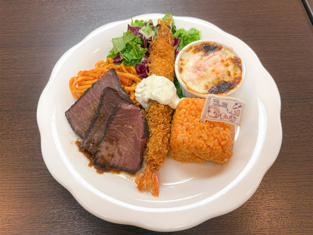 「ユニの仮想模擬家族演習(おままごと)ランチ」といった【なかよし部】のメンバーにちなんだメニューだけでなく、ぺコリーヌの大好物「エビ天おにぎり」の定食や「メルクリゾート特製! 絶品トゥンヌス丼」などラインナップは豊富な。ドリンクメニューはコラボ風呂にも登場した温泉をモチーフにしたメニューとなっている。