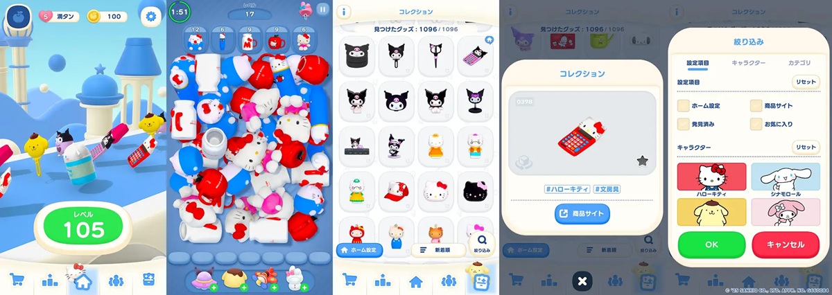 本作は、株式会社サンリオのキャラクターのグッズが1,000種類以上登場する3Dのパズルゲームです。山盛りのグッズの中から、同じ3つのグッズを探してタップするだけの、簡単なルールで遊ぶことができます。昔懐かしいグッズから最新グッズまで、大人から子供まで、たくさんコレクションし、お楽しみいただくことができます。2025年9月29日(月)に世界144の国と地域にむけて正式サービスを開始。
