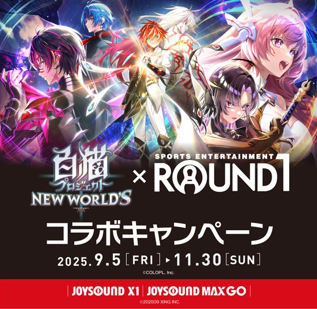 現在、全国のラウンドワン91店舗にて、コラボキャンペーンを開催中。コラボドリンクを注文すると、缶バッジやコースターがもらえるパックを販売しているほか、池袋店および梅田店ではコラボルームも設置している。また、10月4日より、コラボドリンク購入時にもらえる缶バッジのラインナップが第2弾に変更となる。