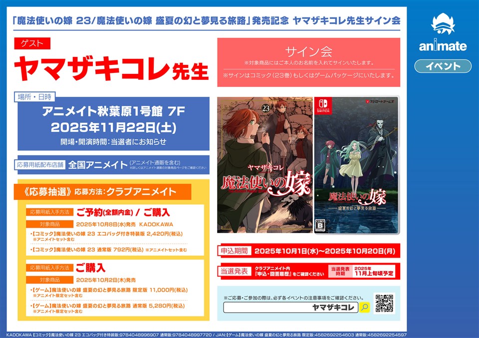 発売を記念して、ヤマザキコレ先生によるサイン会の開催が決定した。全国のアニメイト(アニメイト通販)で対象商品を購入することで抽選に参加できる。