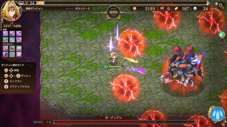本作は、全編フルボイスのアリーナシューターで、攻撃的なプレイスタイルが特徴。敵の群れにダッシュで突っ込み、召喚者を狙い撃ちすることで、多数の敵をまとめて倒す爽快感を味わえる。初めてプレイする人のために、プロローグで早口のあらすじ解説があり、ゆっくり解説テキストや紹介画像を見ることができる「案内所」も用意されている。