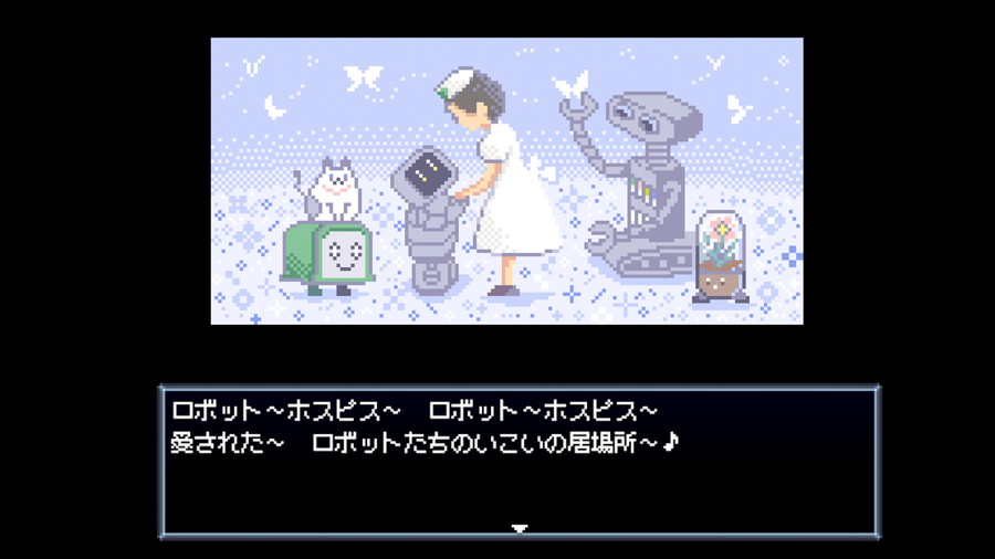 素朴な2Dドット絵とファミコン風の楽曲が特徴で、派手な演出はなく、ゆったりとした時間の中でロボットたちとの心の交流をじっくりと感じられる作品となっているという。