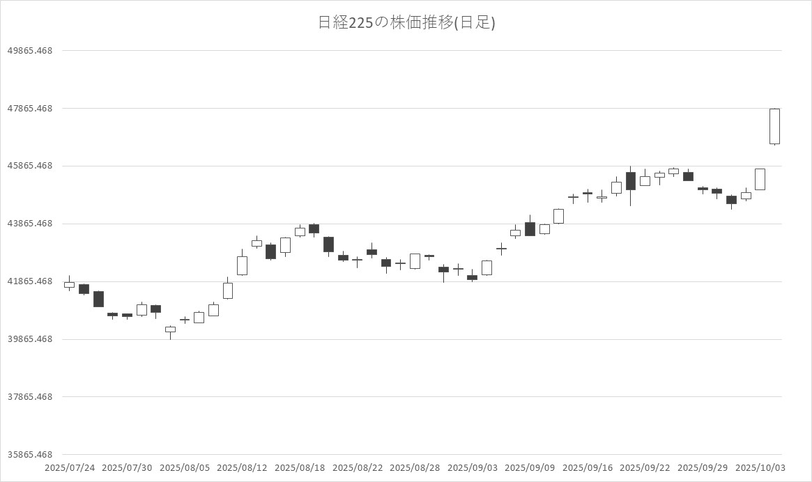 10月6日前場の東京株式市場は3日続伸。日経平均株価は、前営業日比2065円86銭高の4万7835円36銭で午前中の取引を終えた。自民党新総裁に選出された高市早苗氏が日銀の利上げをけん制するものと受け止められており、史上最高値を更新した。