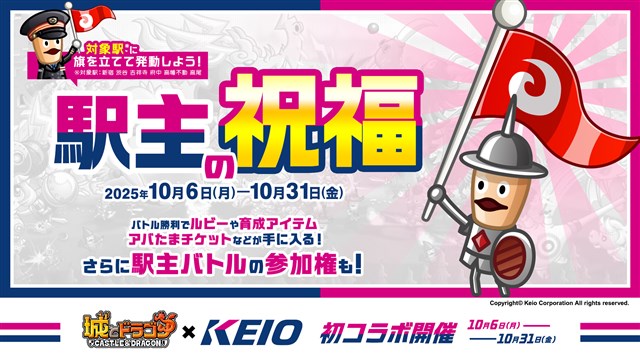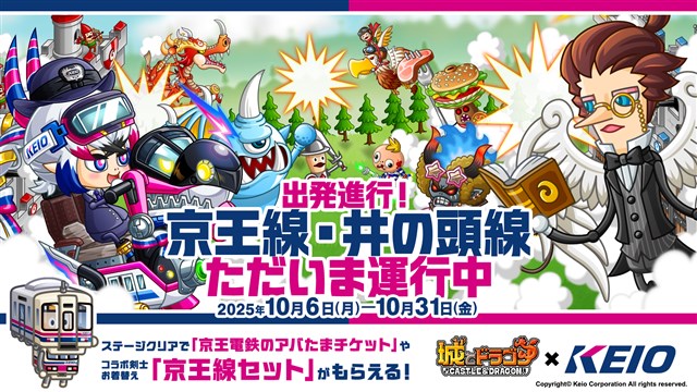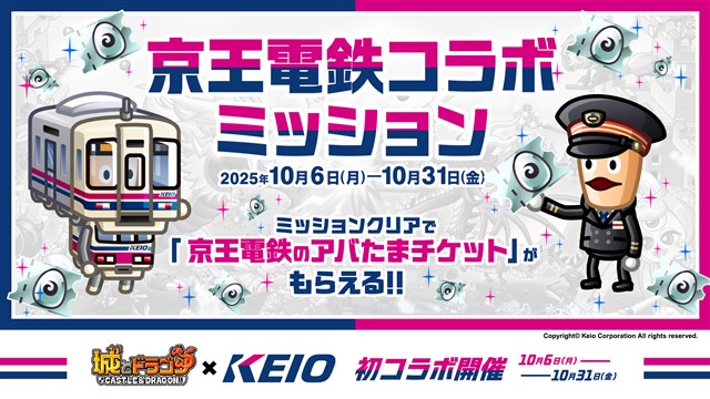 アソビズムは、『城とドラゴン』において、「京王電鉄」と初のコラボイベントを10月6日10:00より開催することを発表した。
