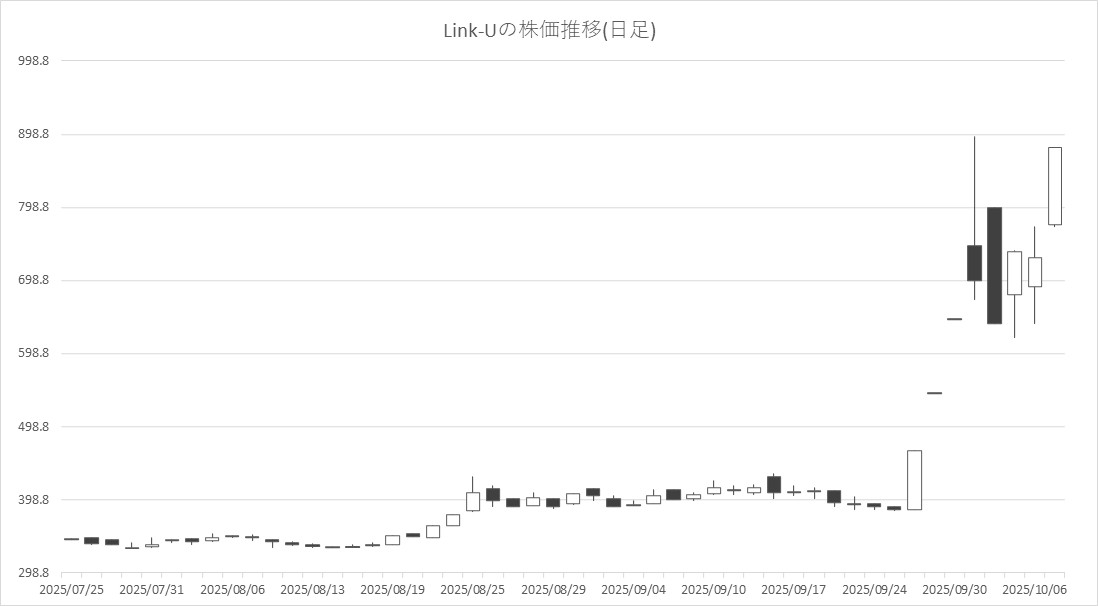 最後に騰落ランキングを見ると、Link-U<4446>やサン電子<6736>、gumi<3903>、オーバラップHD<414A>が値上がり率上位となり、モブキャストHD<3664>、イオレ<2334>、サイバーエージェント<4751>、ディー・エル・イー<3686>が値下がり率上位となった。