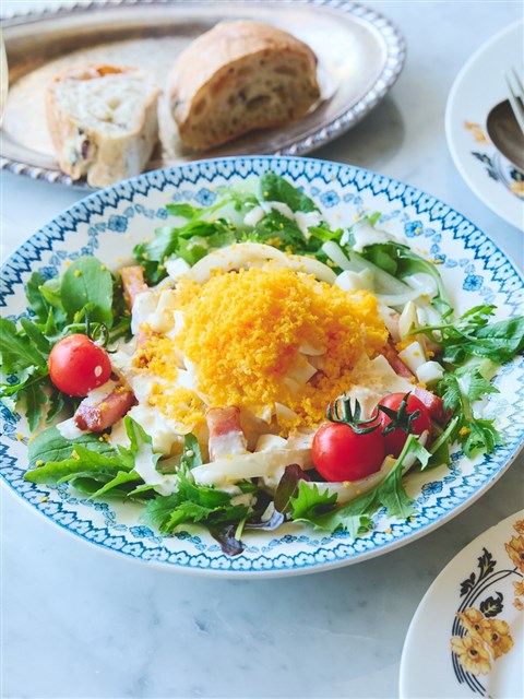 <東の国>エルダーフラワーソーダ/ファウスト、ミモザサラダ/シノ、おじや/ヒースクリフ、シュニッツェル/ネロ
