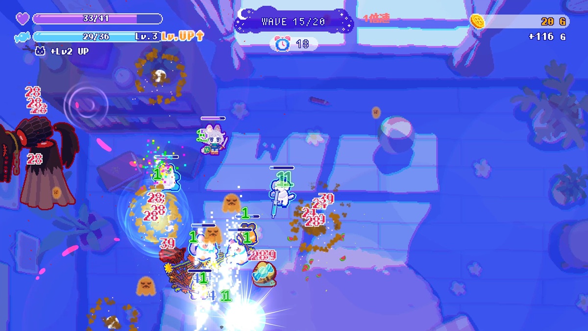 工場で働くビートちゃんがリズムに合わせてフルーツを潰し、ひたすらジュースを作り上げていきます。ワンダーモードに突入すると、世界は一変!一緒にキメて、キュートなモンスターをハイテンションに潰しまくろう。