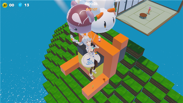 本作は、ホロライブメンバーを操作してゴールを目指すジャンプアクションゲーム。様々なオブジェクトの足場や、マスコットバルーンを使った「滑空アクション」を駆使してゴールを目指そう。